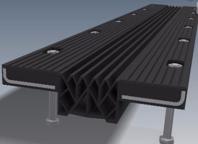 La junta WABO Modular ofrece una superficie de rodamiento suave al mismo tiempo que absorbe el impacto generado por el tráfico pesado.
